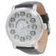 Dit horloge heeft cirkels in plaats van getallen. Elke cirkel is opgezet als een sjabloon die moet worden gewijzigd met een eigen foto. Plaats 12 foto's op dit horloge. De achtergrond van het horloge is een boomschijfje. Verander de tekst in het midden van het horloge naar je eigen achternaam.