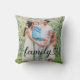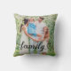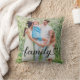 Moderne en stijlvolle aangepaste kussensloop met een favoriete foto met een minimalistisch 'familie' typografie-overlay ontwerp dat elegante bloemen en hartdetails bevat. De zwarte tekstkleur kan worden aangepast. 2 foto voor / achter ontwerp stelt u in staat om een foto op de voor- en achterkant of twee verschillende foto's toe te voegen.