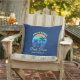Familienaam Strandhuis Zomerpalmbomen Zonsondergang Retro Style Navy Blue Outdoor Sierkussen. Personaliseer met uw familienaam, locatie en meer.