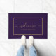 Elegant welkome Doormat met een gouden script op een paarse achtergrond. Personaliseer uw familienaam of tekst.