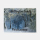 Prachtige natuur — sneeuw diep in een bos, blauw in de schaduw en sprankelend met zonlicht op de buitenste takken vormt een betoverende winterachtergrond. Het is gemakkelijk aan te passen met jouw naam en "Welkom" door op de "personaliseer" link te drukken. Er wordt gebruikgemaakt van zwarte tekst, van coördinerende script- en vetgedrukte lettertypen. #welcomemat #doormat #homedecor #welcome #porchdecor #home #customdoormat #frontdoordecor #homesweethome #personalizedwelcomemat
