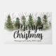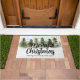 Familienaam in zwarte scripttekst en grove dennenboom met een kleine schattige rendieraaldoormat. Dit ontwerp is wit van de sneeuw en ziet er echt winter uit. De waterverf dennenboom maakt het ontwerp zo mooi en natuurlijk. De prachtige zwarte tekst in manuscript kunt u het in wat veranderen u wenst en ook familienaam in een lichtbruine mooie tekst. We wensen je een prettige kerst!
