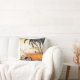 Vintage illustratie, reis- en transportafbeelding met een gezin dat in een oranje antiek converteerbare auto langs de kust van Florida rijdt. Een vrouw is waterskiën en palmbomen zwaaien in de zachte bries.
