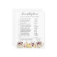 Deze baby shower spelkaart is voorzien van prachtige pompoenen & floralen met zachte waterverf in tinten van wazige roze en witte tinten die zijn uitgebalanceerd met zoet oranje en onbeschoft paars, waardoor het een warm en luchtachtig palet wordt. Verander achtergrondkleur of voeg grafiek toe om uw douchethema aan te passen. Neem contact met mij op voor een aangepaste bestelling. Natuurlijk is het niet nodig dat je spelletjes speelt op het baby shower, maar denk er eens over na: je gaat een groep van alle leeftijden hebben, en de meeste gasten hebben elkaar waarschijnlijk nooit ontmoet voor het feest. Het mengen in een paar van deze klassieke baby showers spellen is een perfecte manier om het ijs te breken. Deze professioneel ontworpen kaarten zijn snel aanpasbaar. Voeg uw douanetekst aan dit ontwerp toe door de "Edit this design sjabloon"vakjes op de rechterkant van het punt te gebruiken, of blauwe "pas het"knoop aan om de tekst te schikken, de doopvonten en de kleuren te veranderen en extra informatie of afbeeldingen aan dit ontwerp ook toe te voegen. Klik op "Verder aanpassen" om de volledige bewerkingsopties te openen. Als je coördinerende objecten nodig hebt (dank je kaarten, enz.), kun je contact met me opnemen voor een aangepaste bestelling. ****Voor aangepaste aanvragen heb je mijn hulp nodig. Plaats deze koopwaar niet in je kar. Stuur me in plaats daarvan een e-mail naar lauralise@iyhtvdesigns.com Een link naar je koopwaar wordt naar je gestuurd zodra het object beschikbaar is. U kunt die link gebruiken om uw bestelling te plaatsen. Laat maximaal 48 uur staan.