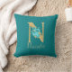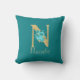Fancy goud & Aqua Floral Letter N Sierkussen