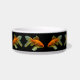 Foto van fancy goudvis geïsoleerd op zwart bedrukt rond kom.