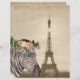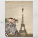 sepia tint achtergrondfoto van de Eiffeltoren met een deklaag van een prachtige zebra van de waterverf met een bloemkroon
