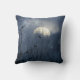 Kraaien in een blauwe fantasiewereld van bomen en de maan terwijl het achter wolken glijdt op een hemelthema kussen.