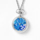 Bekijk in een semi-abstracte illustratie van een fantasiebos met bloemetjes, bladeren, boompjes en vogeltjes, in de kleuren kobaltblauw en wit