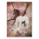 Een digitaal schilderij van een bruine Pegasus, een witte eenhoorn en een kleurrijk zeemeerpaard (Hippocampus) op een bruine, roze, groene getextureerde achtergrond.