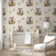 Boerderij dierlijke geit met bloemengroen op textuur crème achtergrond.