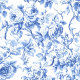 Farmhouse Blue French Toile Roses Floral Wallpaper Behang