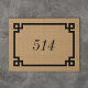 Moderne boerendoormat gepersonaliseerd met uw huisadresaantallen of andere douanetekst in een belangrijke Griekse grens. Houd er rekening mee dat de achtergrondstructuur van het vulcanvas deel uitmaakt van het gedrukte ontwerp en dat het product niet van echt materiaal voor het vullen is gemaakt. Klik de Customize knoop van het om uw eigen tekst toe te voegen en uw eigen unieke van een soort ontwerp te creëer!