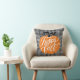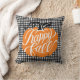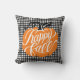 Deze kussen van een boerderijstijl voorzien van een overal zwart-wit gingham controlepatroon met een pompoenontwerp. In de pompoen staat "Happy Herfst".