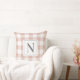 Farmhouse Roos Pink Gingham Check Pset Monogram Kussen