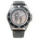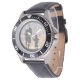 This stylish men's leather band watch features a silhouette of a dad and young son holding hands with their golf clubs as they walk into a beautiful sunset. A meaningful gift for dads and sons who love golf and making memories together.