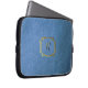Persoonlijke Monogram blauw Faux-leder-effect neopreen-laptophoes. Voeg een naam voor een gepersonaliseerd cadeau toe.