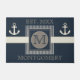 Faux Burlap Effect Nautical Ship's Anchor Gestreepte grote deurmat ontwerp voor u te personaliseren met uw initiaal, familienaam en vastgestelde datum.