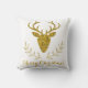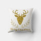 Deze feestelijke kussen voorzien van een prachtig afbeelding van valse gouden folie getextureerde hertenkopvorm met enkele boomtakken. Er is ook een aanpasbaar tekstgebied dat nu "Zalig kerstfeest" leest. Bericht: De textuur van de folie is niet echt. Het is een gedrukt afbeelding dat het uiterlijk van gouden folie nabootst.