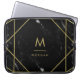 Faux Gold Geometric Design on Black Marble-look Laptop Sleeve