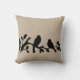 Zoete zwarte en witte silhouet van dunne/zwaaide vogels op een tak van vogelliefde, met een patroon van jute linen burlap rustic shabby country chic worpen kussen.