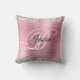 Faux Shiny Silver Glitter and Pink Folie Monogram Kussen