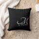 Faux Silver Glitter Embossed Silver Monogram Black Kussen