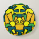 Het is een mooi kussen met het levenswiel er op. Je ziet dat het een afbeelding is van een tempeldeur of wand, het hout is herkenbaar. Het past geweldig in ons interieur: een beetje Zen, maar wel kleurig. Mooie kleuren, zoals op de afbeelding.