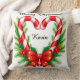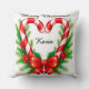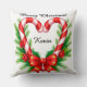 Een levendige kerstthema compositie met snoepstokken vormen een hartvorm omringd door evergreens, rode bogen met gouden accenten, en feestelijke hulstbessen.