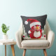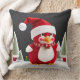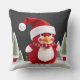 Vrolijke rode pinguïn die een kerstmuts draagt tussen feestelijke dennenbomen, wat kerstgeest en vakantiegroet oproept in een besneeuwde winteromgeving.