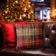 Feestelijke Tartan 'Joy' Calligrafie Decoratief Kussen