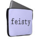 Het hebben of laten zien van uitbundigheid en sterke vastberadenheid, dat is pittig. Is dat jij of iemand die je kent? Show het af met het woord 'feisty' in zwart in een cool lettertype. De achtergrond is transparant zodat kunt u het veranderen. Klik op de knop "Aanpassen!" en selecteer vervolgens een "Afgedrukte achtergrondkleur" in de zijbalk. Wanneer u klaar bent, klik op Toevoegen aan winkelwagentje om uw aangepaste ontwerp aan te schaffen. Digitaal gemaakt afbeelding. Copyright © 2011 Claire E. Skinner. Alle rechten voorbehouden.