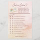 Dit leuke vrijgezellenfeest spel zal testen hoe goed uw gasten het verhaal van de bruid kennen. Gasten moeten raden of elk item feit of fictie is. Het spel is volledig aanpasbaar, zodat u uw eigen items kunt invoeren of de door ons verstrekte items kunt gebruiken. Het blush roze en perzikkleurige kunstwerk bevat een schattige waterverf van een verlovingen ring gebalanceerd in de pagina's van een open boek dat een hartvormige schaduw vormt met een roze roos in de buurt. Ideaal voor een vrijgezellenfeest met een boekthema!