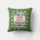 Vetgedrukte tekst met de tekst "Feiten zijn geen lastige dingen" is gecentreerd tegen een groene achtergrond. De zwarte en donkerkleurige oranje tekst bevindt zich op een witte rechthoek met grote getextureerde witte stippen eromheen, waardoor een speels contrast ontstaat tegen de achtergrond van de effen kleur.