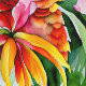 rode, groene, blauw en geel waterverf papegaaien en tropische bloemen en planten douchegordijn.