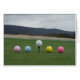 geel roze en blauw, wit, helder gekleurde Golf Balls op een golf bergbaan Foto van Sandy Closs, genomen op Lake Arrowiad. Golf, golfer, golf, golf grof, veer, sporten, ooster, vakantie, "oostereieren" roze, golfers blauw geel