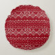Festive round Holiday gooit kussen met een Scandinavisch/Noors breipatroon in rood en wit.