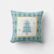 Our fun Festive Royal Botanical Robin's Egg Blue Emblem Throw Pillow features a Forever Endeavor original print. It displays a unique floral motif in a beautiful blue tone with an emblem showcasing a Christmas tree with a festive bow, lines and stars. This design works for your Christmas decor. Bundle matching items from this collection, like a tree skirt and kitchen towel.