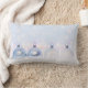 Een lumbaal kussen met een magisch kerstontwerp. Kerstboomversieringen zitten samen op wat witte sneeuw. De achtergrond heeft een wit bokeh (wazig licht) patroon met vallende sneeuwvlokken. Perfect vangt het wonder en de magie van Kerstmis.