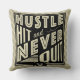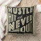 Veldhockey Hustle, Hit & Stop nooit met Pillow. De tekst leest: Moedel, HAAT en sluit nooit, met een kruisen gebied hockey sticks pictogram.