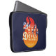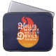 Laptophoes met de citaat van William Shakespeare The Tempest "Hell is empty, and all devils are here are here" tegen een oranje vuur op een blauwe achtergrond. *Gelieve te merken op dat het Zazzle Watermerk dat in de gezoemvoorproef verschijnt NIET op het definitieve gedrukte product zal verschijnen. © Bookish en Wonderful