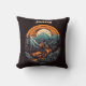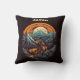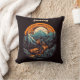 Fietsen Leven, retro schilderen in sinaasappel en blauw van een fietser die door de bergen en het bos met de zon op de achtergrond rijdt