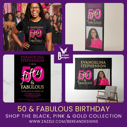 Modern Black Pink Gold 50 and Fabulous Birthday Ontworpen door Jackie RAYMOND