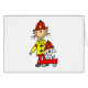 Een stokfiguur brandweerman in een geel jasje en een rood vuurgekleurd pet en een dalmapup in een rode wagen op stokfiguurtje brandweerman brandweerman T-shirts, scheermessen, tassen, mokken, stickers, kaarten en nog veel meer die aanpasbaar zijn!