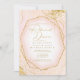 Een aquarel achtergrond in tinten rose goud wordt bekroond door een abstract van fijne gouden lijnen en glinsterende lichteffecten om de onderdelen van dit prachtige trouwpakket te creëren. De hier getoonde repetitiediner uitnodiging heeft ook een prachtige verlooprand om al uw tekst te bevatten. Voeg eenvoudig uw eigen namen, trouwdatum en evenementdetails toe met behulp van de meegeleverde sjabloon. Zoek ID867 om andere onderdelen en kleurkeuzes voor deze set te bekijken.