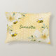 Gele, witte achtergrond met een honingraatpatroon. Gedemoreerd met lichtgele, roomkleurige tropische bloemen, hibiscus en gelukkige hommels. Sjabloon voor een naam, groene handgeschreven tekst. Ideaal voor je zomerhuis!