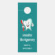 Deurhanger met een afbeelding van een cartoon stijl grote witte tand glimlachend gelukkig met een rode tandenborstel en het geven van de duimen omhoog teken.