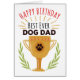 Geef je pooch een kans om Happy Birthday te zeggen met deze leuke, illustratieve stijlkaart met de titel "Happy Birthday, Best Ever Dog Dad" in rode en zwarte letters boven een grote, gouden trofee met een zwart pootgedrukte kaart en met de hand getekende groene laurel accenten.