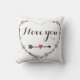 Het filigraan hart met ik hou van je kussen is de perfecte manier om je liefde te shows. Het voorontwerp is voorzien van een filigraan hart met de tekst "I love you" met een kleine pijl met een roze hart in het midden. Op de achterkant heeft het kussen hetzelfde filigraan hart met wilde bloemen in het midden. Pas het ontwerp aan elke speciale gelegenheid aan, zoals verjaardagen, Moederdag, Kerstmis, jubilea, bruiloften en meer. Let op: dit ontwerp ziet er het beste uit op een lichtgekleurde achtergrond.