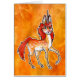 Dit ontwerp is voorzien van een vuurgekleurde eenhoorn met levendige oranje en rode tinten.